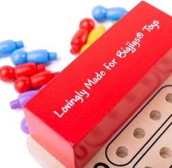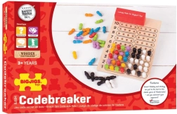 Играта Логика от Bigjigs Toys е чудесна пътна играчка и образователен инструмент. Играчите трябва да отгатнат комбинацията от четири цветни колчета на своя противник и имат само десет опита, което гарантира напрежение и съсредоточеност. Цветовете на колчетата са много ярки, което подпомага ученето за разпознаване на цветове и подобрява координацията на движенията.