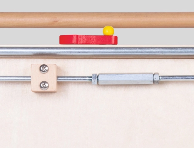 Дървената конструкция и многофункционалният дизайн подпомагат развитието на креативността и моториката благодарение на вградената спирачна система, таблото за рисуване и учебния часовник.
