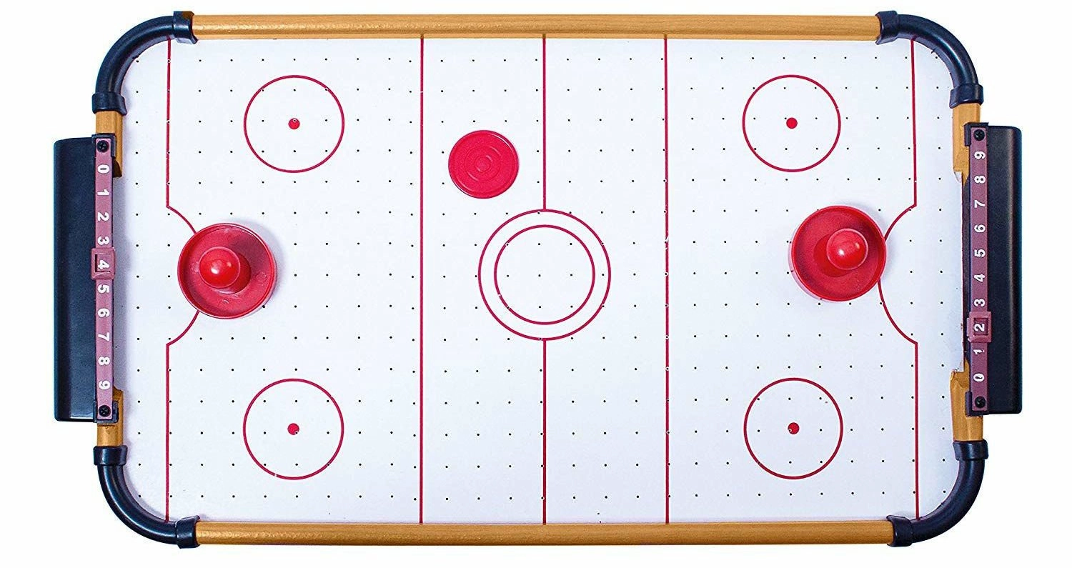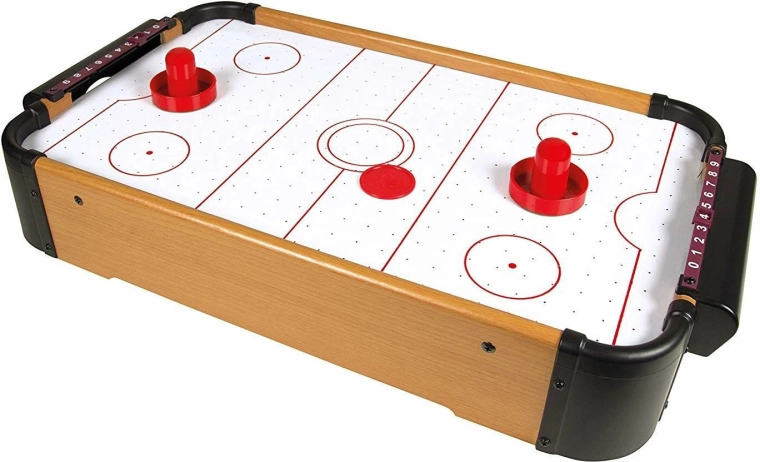 Масата има здрав дървен корпус, интегрирани врати, ръчен плъзгащ се брояч за резултат от двете страни и се доставя с два стика и шайба. Играта развива концентрация, око–ръка координация и феърплей.