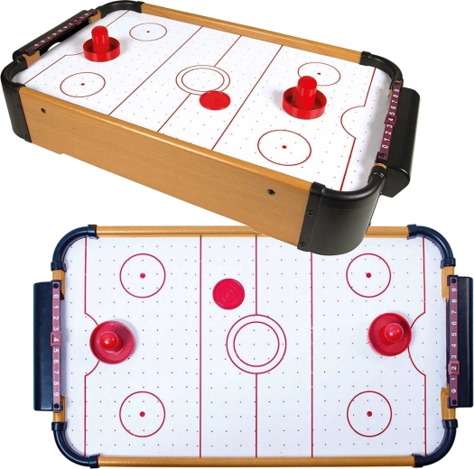 Насладете се на бързо и напрегнато действие с настолния въздушен хокей от SMALL FOOT. Компактните размери позволяват игра почти навсякъде, а въздушната възглавница осигурява бързо и плавно плъзгане на шайбата. Здравата изработка от дърво и пластмаса, ръчните броячи за резултат и лесното управление го правят отличен избор както за деца, така и за възрастни.