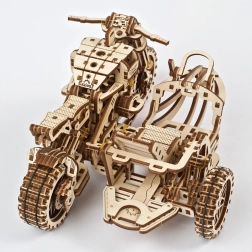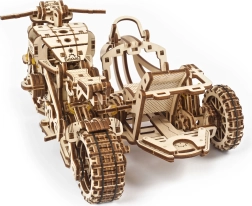 Сглобеният модел на мотоциклет със сайдкар е с размери приблизително 22 × 16 × 11,5 cm и се превръща във впечатляващ акцент в интериора. Подробното илюстровано ръководство води строителя стъпка по стъпка и осигурява приятно изживяване без необходимост от лепене.