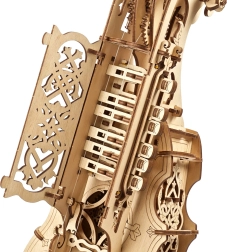292 прецизно лазерно изрязани елемента от качествен шперплат се сглобяват без лепило. Декоративните орнаменти и видимите предавки я правят атрактивна украса.
