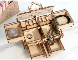 Открийте магията на механиката с елегантната дървена кутия за бижута UGEARS. Този прецизен 3D модел от естествено дърво предлага уникален механизъм за отваряне, сглобяване без лепило и напълно функционално движение. Идеален за съхранение на бижута и дребни вещи, както и като стилна декорация и подарък за почитатели на техниката и дизайна.