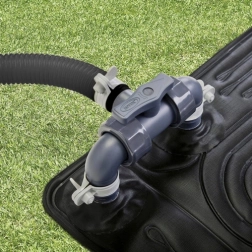 Благодарение на възможността за свързване на няколко подложки адаптирате отоплението към обема на вашия басейн. Интегрираният байпасен вентил позволява регулиране на дебита или временно изключване на подложката от кръга. Подложката поддържа маркучи Ø 32 mm, а с включените адаптери и Ø 38 mm. За най-добра ефективност използвайте филтърна помпа с дебит 2006–5678 l/h.