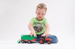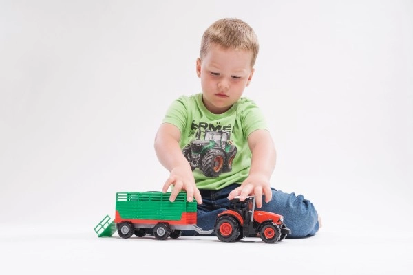 Играчката е изработена от издръжлива пластмаса и е готова за употреба веднага след разопаковане – батериите са включени. Идеален подарък за малки почитатели на селскостопански машини, които ще се наслаждават на часове креативна игра.
