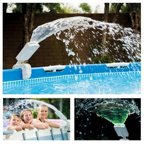 Насладете се на вечерно къпане с вълшебен светлинен ефект. Фонтанът INTEX създава декоративна водна струя с LED подсветка в четири цвята (бял, червен, син, зелен), подобрява циркулацията и кислородирането на водата и така подпомага ефективността на басейновата химия. Благодарение на хидроелектрическия генератор не се нуждае от външно захранване – светлината се включва автоматично при поток на водата.