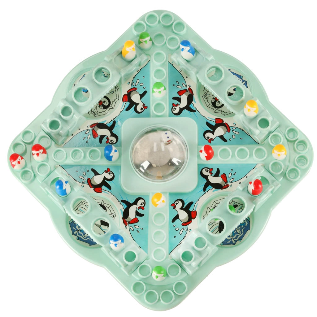 Квадратната дъска се побира на всяка маса и е идеална и за път. Цветни фигурки във форма на пингвини за 2–4 играчи.