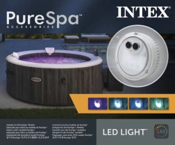 Стилно осветление за вашата хидромасажна вана придава неповторима атмосфера на вечерните къпания. Компактната многоцветна LED лампа е съвместима с INTEX PureSpa, има дълъг живот на светодиодите и лесно управление. Захранва се от широко достъпни батерии 3× AAA.