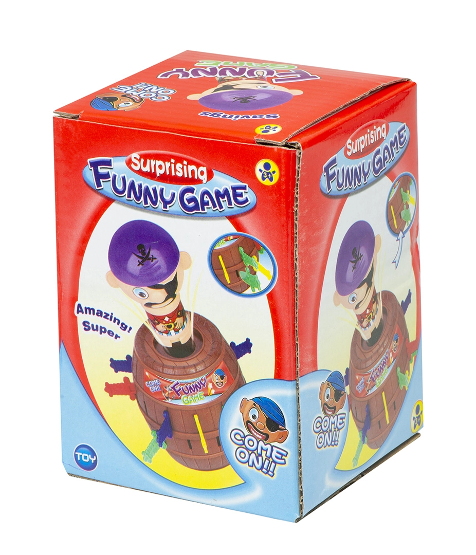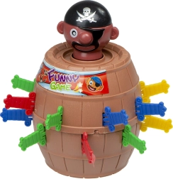 Любима пиратска игра за деца и възрастни. Поставете пирата в бурето, раздайте мечовете и ги вкарвайте последователно в отворите. Един от тях задейства изненадата – пиратът изскача и разсмива цялата компания. Играта е идеална за семейни вечери и детски партита и развива наблюдателност и отборна комуникация.