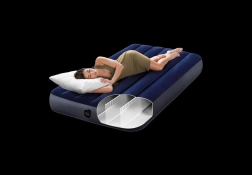 Практичен надуваем матрак за един човек с размери 191 × 99 × 25 cm от марката INTEX, идеален за домашна употреба и пътуване. Издръжливото PVC със саметен велур на повърхността осигурява приятен допир и по-добро прилепване на чаршафа, докато технологията Dura‑Beam Fiber предлага стабилна опора и дълъг живот. В комплекта е включена кръпка за ремонт.