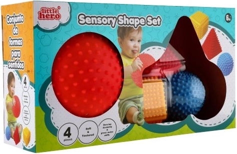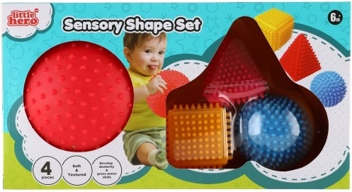 Сетът от сензорни геометрични форми LITTLE HERO ще впечатли всяко любопитно дете. Разнообразните повърхности и ярките цветове стимулират сетивното възприятие, докато бодливата структура улеснява захвата дори на най-малките ръчички. Манипулирайки отделните форми, децата естествено тренират координацията око–ръка и се учат да разпознават разликите между форми и цветове.