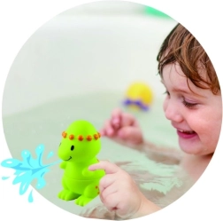 Цветен комплект от 4 сладки динозавърчета за вода с разглобяеми тела за игриво mix & match. Децата от 12 месеца ще се радват на безопасно водно пръскане във ваната и развитие на фината моторика. Компактна опаковка 26 × 24 × 8 cm.