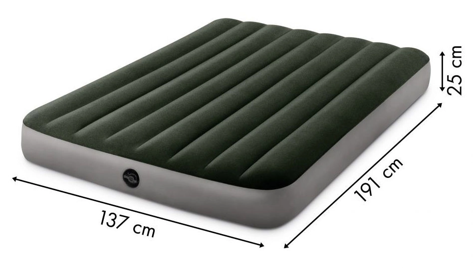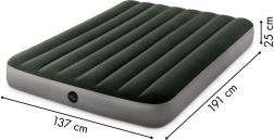Надуваемият матрак Intex с размери 191x137x25 cm е идеален за двама души. Изработен е от здрав PVC материал, а горната му част е покрита с водоустойчив велур, приятен на допир.