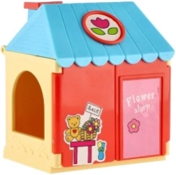 Весела къщичка с цветни мотиви и касичка учи децата да комбинират цветове, да аранжират и да се грижат за клиентите.