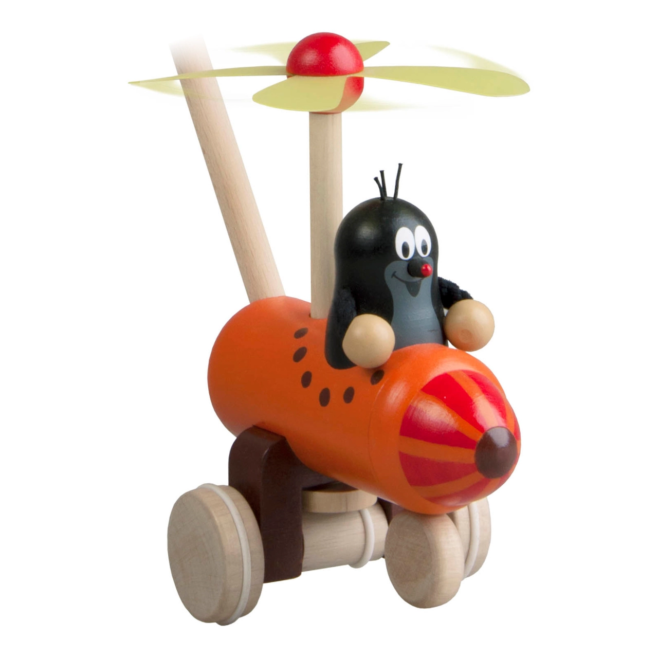 Играчка за бутане Кърт е забавна и безопасна дървена играчка за малки деца. Перката се върти при движение, което стимулира детското въображение и моториката.