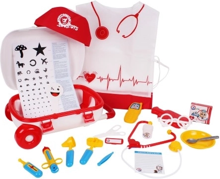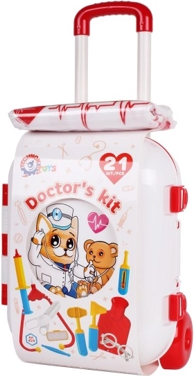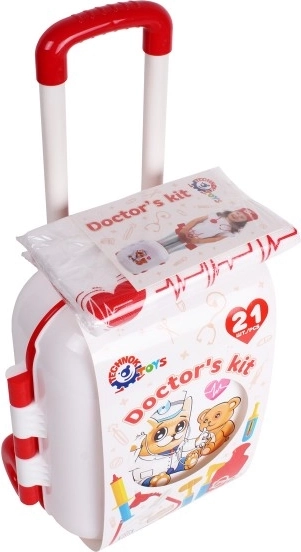 Тръгнете с децата си на лекарска мисия с този мобилен докторски куфар, който съдържа 21 броя медицински инструменти и е лесно преносим благодарение на колелцата и изтеглящата се дръжка.
