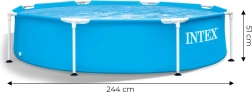 Градинският басейн INTEX Metal Frame с диаметър 244 см осигурява освежаване и забавление за деца и възрастни. Благодарение на здравата метална конструкция и издръжливия трислоен PVC, басейнът е стабилен, безопасен и готов за ежедневна употреба в горещите дни. Лесният и бърз монтаж ви позволява да напълните вода без излишно чакане.