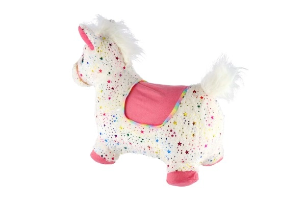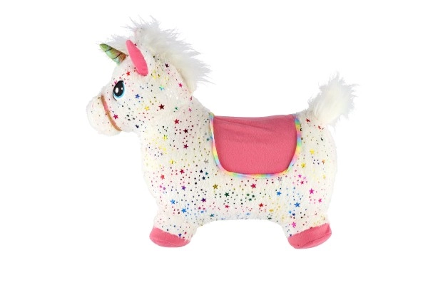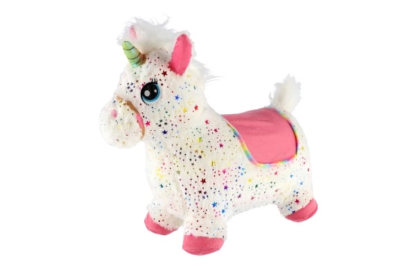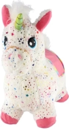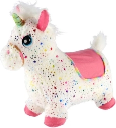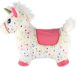 Подскачащото еднорогче е чудесен приятел за първи стъпки и активна игра. Стабилното тяло от издръжлива гума и плюшен перащ се калъф с цветни звездички осигуряват комфорт и хигиена. Ушите служат като дръжки, така че детето може да се държи сигурно и радостно да подскача у дома и навън върху меки повърхности.
