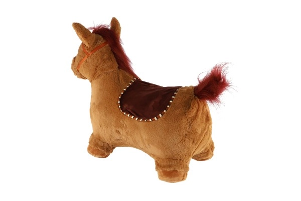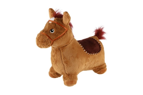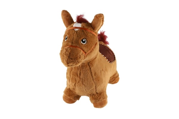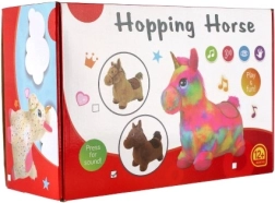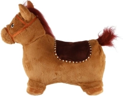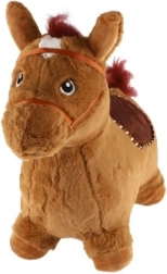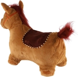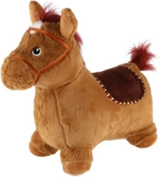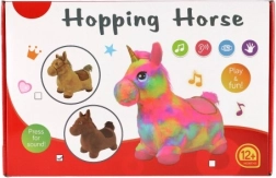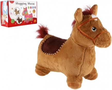 Това сладко подскоци с кафяв плюшен калъф е идеално за деца от 12 месеца. Ергономичната форма помага за развитие на стабилност, моторика и равновесие, докато ушите служат като практични дръжки за по-сигурен захват. При натискане на бутона под гривата кончето издава весели звуци, които мотивират за още игра.