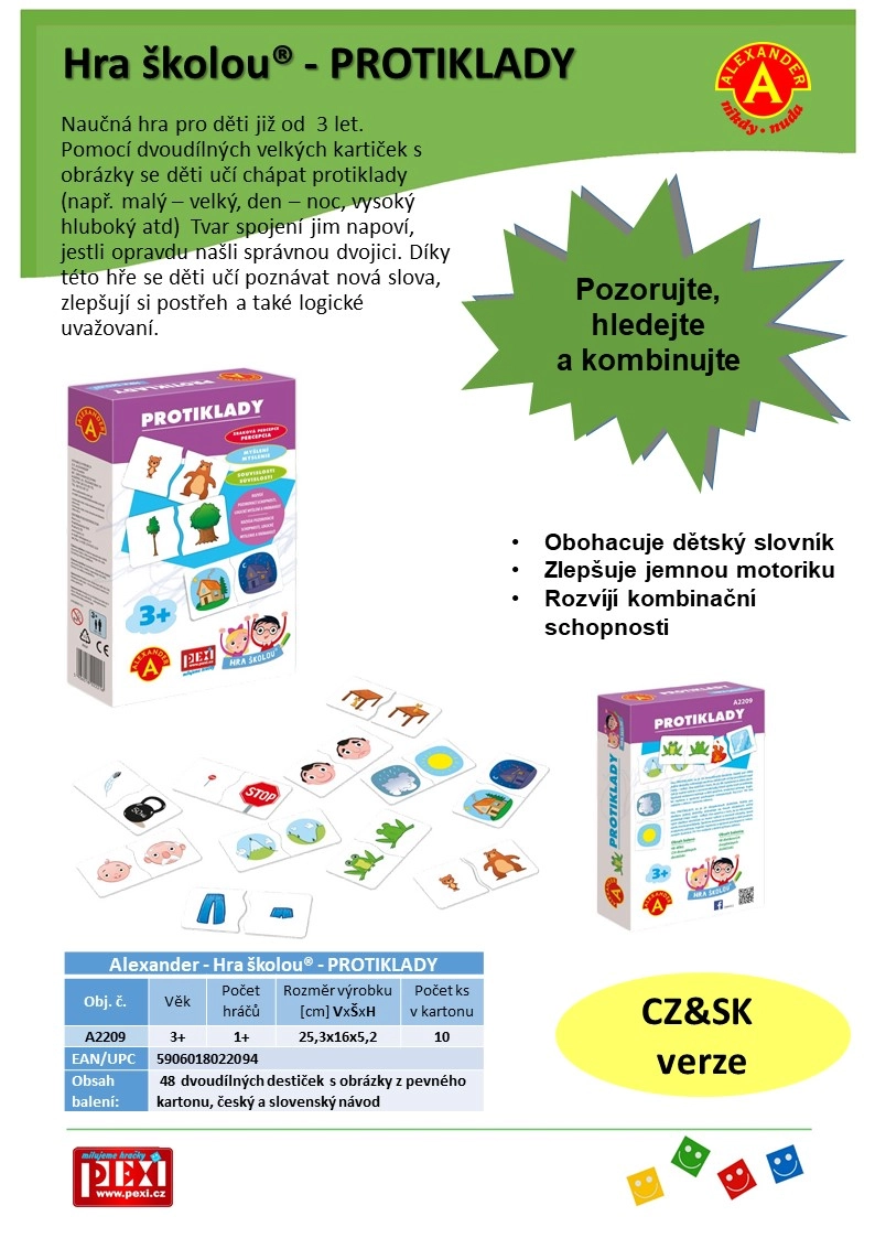 - 48 двучастови плочки с картинки, чешка и словашка инструкция за игра