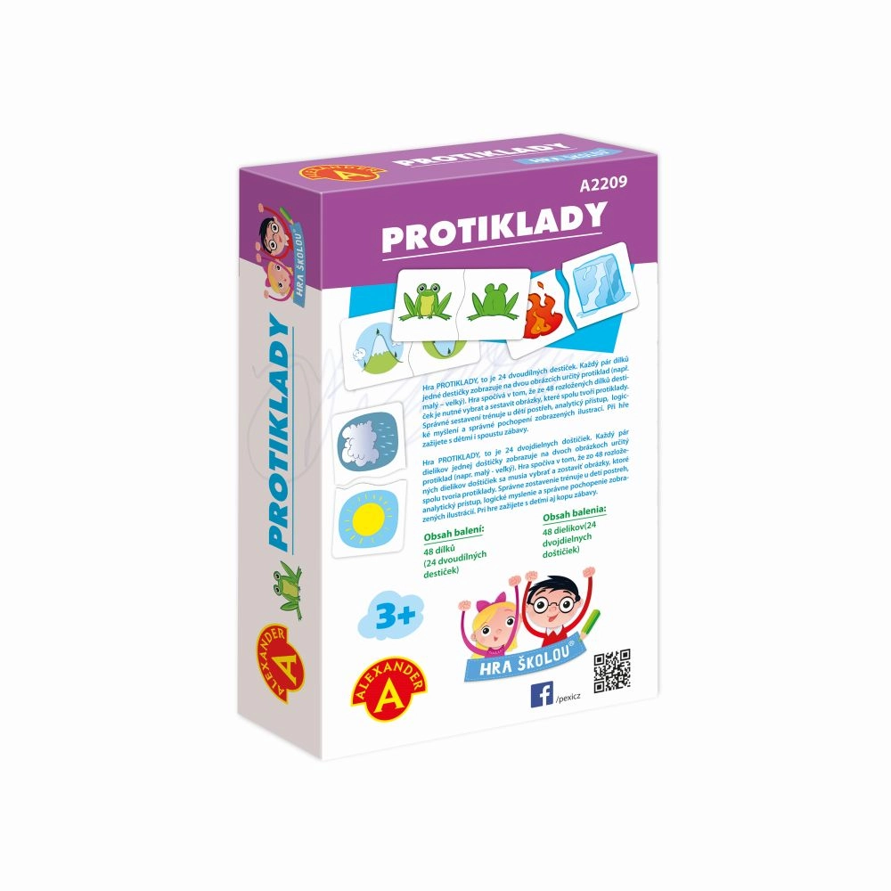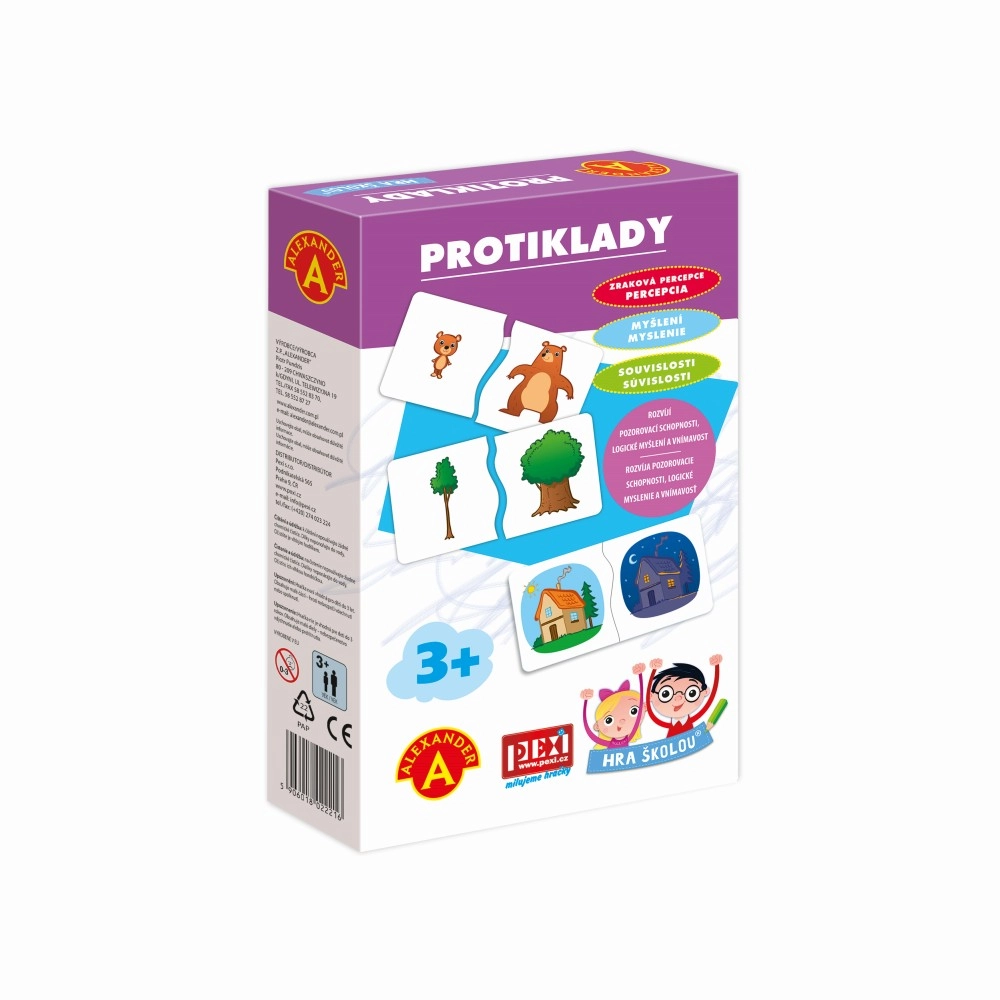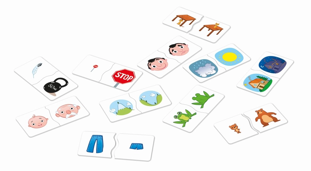 Забавна образователна игра за най-малките, която учи децата да разпознават противоположности с помощта на големи двучастови картончета. Благодарение на уникалната форма на съединяване децата веднага разбират дали са открили правилната двойка. Развива речника, логическото мислене, вниманието и фината моторика.
