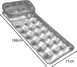 Шезлонгът е проектиран за комфортна почивка както във водата, така и на сушата. Благодарение на вградения възглавник ще се насладите на максимален комфорт, независимо дали четете, се излежавате на слънце или просто плавно се носите. Размерите са подходящи и за по-високи хора, така че можете да се напълно изпънете и отпуснете.