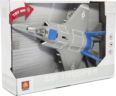 Този пластмасов изтребител е идеална играчка за малки войници и пилоти. Изработен е от качествени материали и е предназначен за деца от 3 години. Благодарение на своите реалистични светлинни и звукови ефекти носи много забавление.