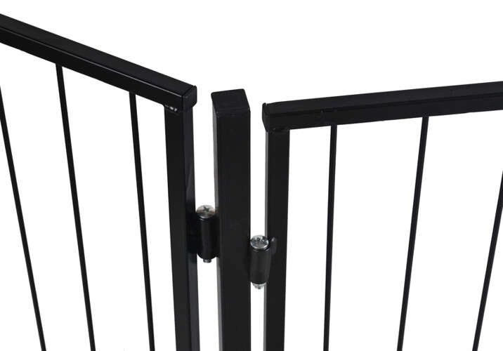 Инсталирането е бързо и надеждно благодарение на монтажа към стена (анкерните елементи са включени в комплекта). Портите са взаимно съвместими – може да се разшири пространството чрез комбиниране на два комплекта и да се създаде по-голяма защитна зона. Издръжливият черен дизайн пасва както на модерни, така и на класически интериори.