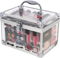 Открийте универсалния козметичен куфар ZMILE Acrylic с общо 42 части за перфектен грим и маникюр. В прозрачния куфар ще намерите всичко – от 16 сенки за очи, ружове и пудра, през червила и гланцове до 3 лака за нокти и аксесоари за оформяне на нокти. Лекият, преносим и дерматологично тестван комплект отговаря на строгите стандарти на ЕС.