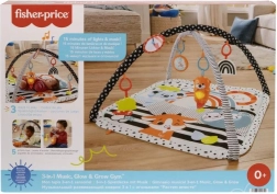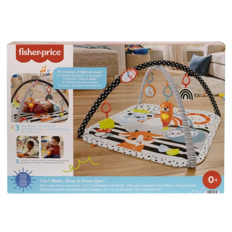 Открийте универсалната играна постелка за бебета от Fisher-Price, която предлага 3 в 1 забавление и развитие. Цветната подложка (около 76 × 76 см) с два обръча осигурява светлинни и музикални ефекти, 5 окачващи се играчки и много възможности за сетивна стимулация, tummy time и трениране на фината и едрата моторика още от 0+.