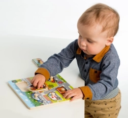 Всеки елемент има дръжчица, която децата лесно хващат и поставят на правилното място.