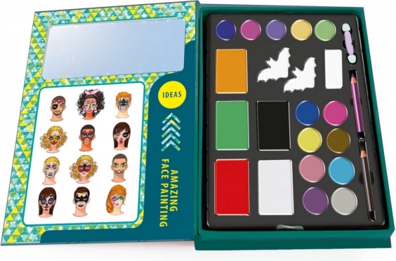 С този комплект за рисуване по лицето от марката Clementoni децата ще се забавляват и ще развиват своята креативност. Отворете кутийката и ще ви очаква подредена палитра с всички необходими средства за безопасен и игрив грим.