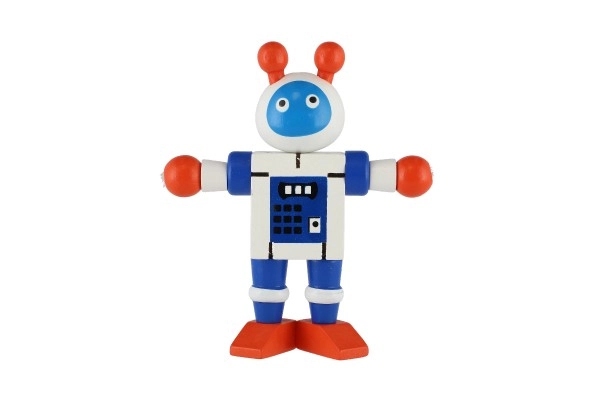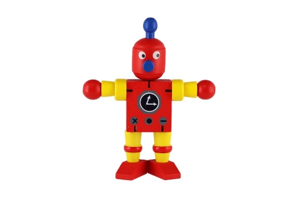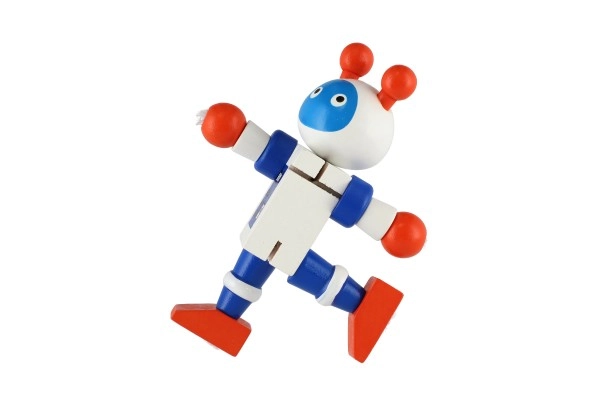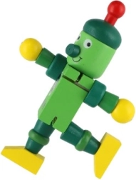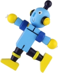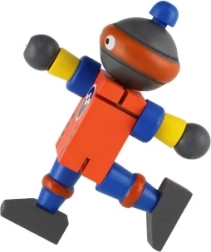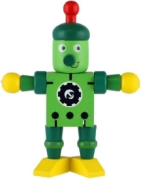 Очарователен дървен робот с височина 12 см ще зарадва всеки малък изследовател. Благодарение на еластичните ластичета има подвижни крайници и глава, така че децата лесно могат да го сложат да седне, да го изправят или да го аранжират в различни пози. Играчката развива фината моторика, креативността и въображението. Подходящо от 18 месеца.