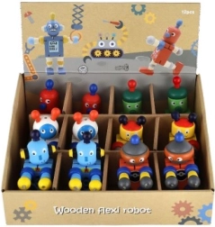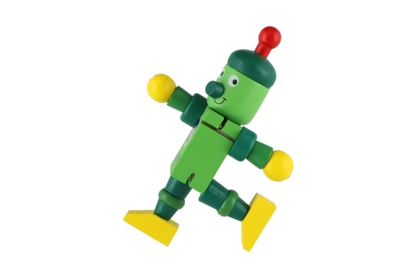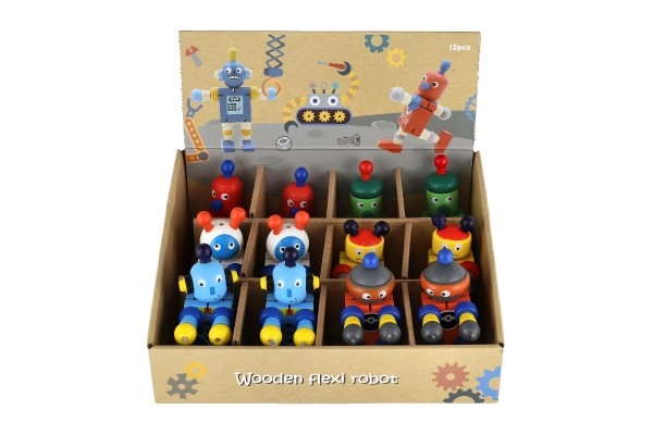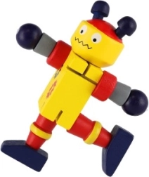 Тези цветни дървени роботи са идеални за първи строителни и ролеви игри. Благодарение на ластичните свързвания се огъват лесно, задържат пози и подтикват децата към творческо разказване на истории. Здравото дърво и гладките ръбове осигуряват безопасно и приятно боравене дори за най-малките.