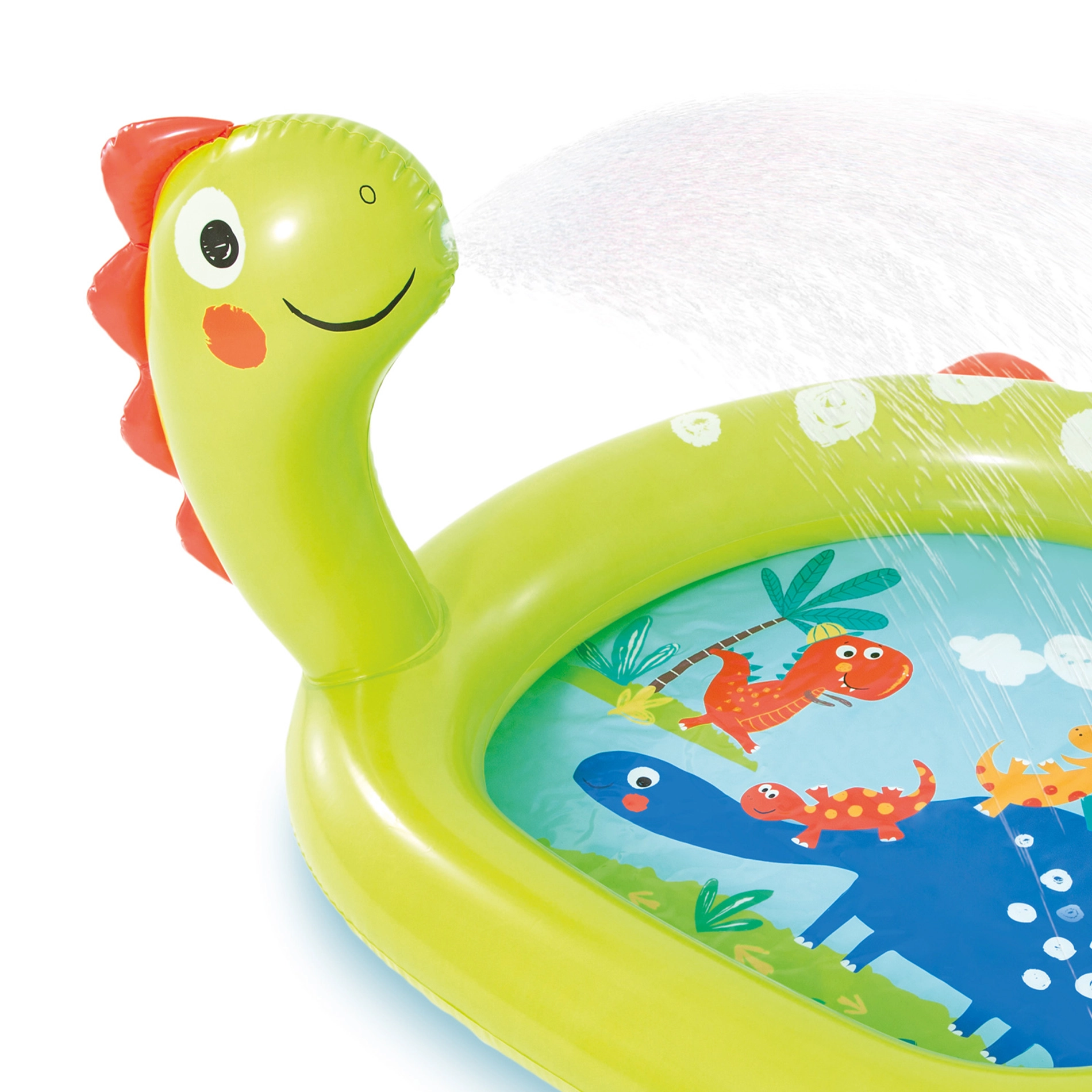 Весел надуваем басейн с фонтан и мотив на динозавър е идеален за лятно забавление в двора. Басейнът е изработен от качествен PVC материал с размери 119 x 109 x 66 cm.