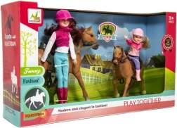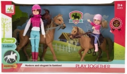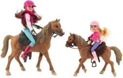 Този удивителен комплект е идеален избор за всяко дете, което обича конете и мечтае да стане ездач. Част от комплекта са две кукли, облечени в ездаческо облекло, включително каски, готови за приключения. Качествените и издръжливи материали гарантират, че комплектът ще издържи и на по-интензивна игра.