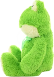 Тази голяма плюшена жаба ще зарадва с мекотата си и приятния материал, който приканва към гушкане. Благодарение на приятелското изражение и деликатната панделка тя ще се превърне в любима играчка и чудесна декорация. Идеална е за бебета, деца в предучилищна възраст и по-големи деца.