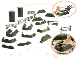 Създайте детайлна бойна сцена с пластмасови войничета в два цвята и множество принадлежности. Децата могат да планират стратегии, да строят отбранителни линии и да развиват логическото мислене и ориентацията в пространството. Комплектът е чудесен за самостоятелна игра и за игра в екип с братя и сестри или приятели.