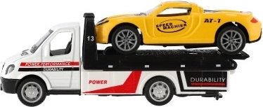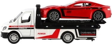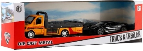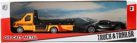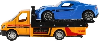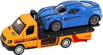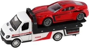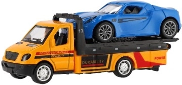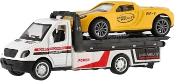 Този реалистично изработен камион пътна помощ с натоварена спортна количка ще разшири детския автопарк с любимо работно возило. Благодарение на обратното навиване е достатъчно да натиснете, пуснете и да гледате действието – перфектно за сценки от града, пътя и автосервиза.