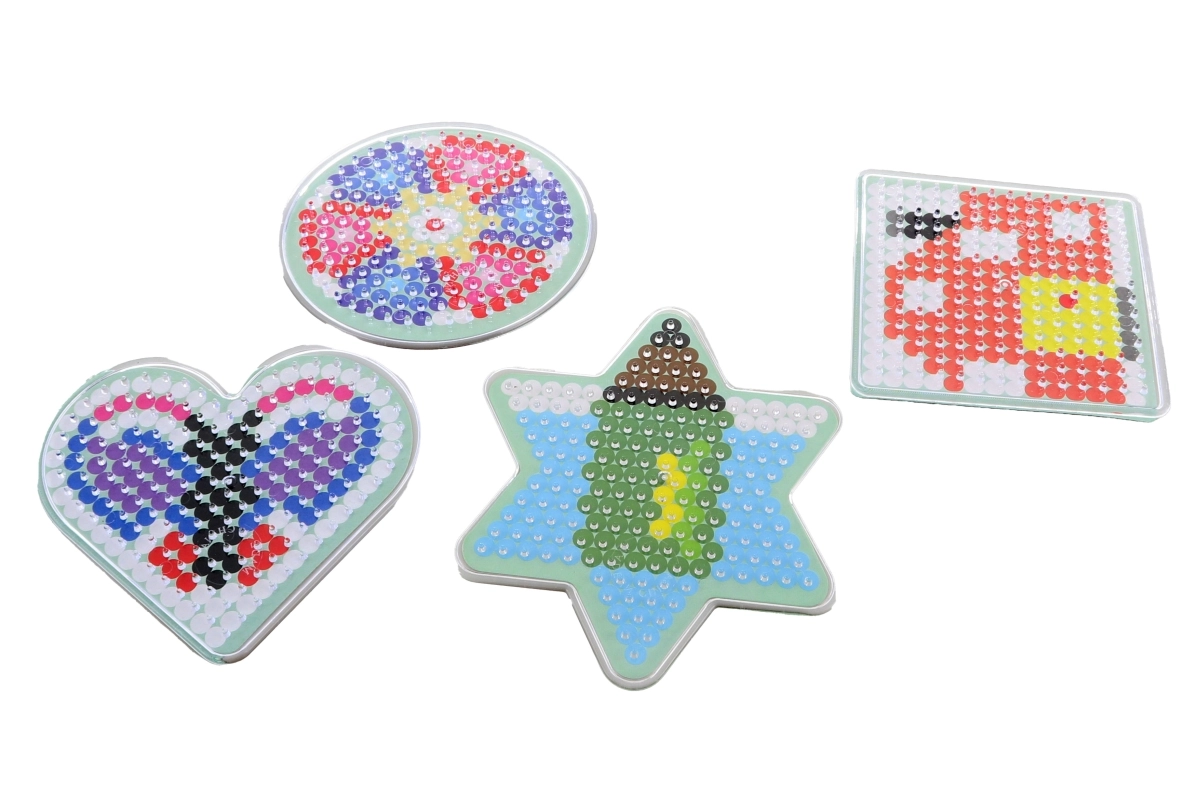 Практичните подложки във форма на сърце, звезда, кръг и квадрат помагат на децата бързо да започнат и да развиват фината моторика и търпението.