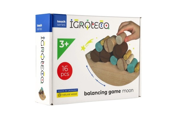 Открийте магията на играта Балансова игра Луна от марката IgroTeco, създадена за деца от 3 години. Тази игра с 16 дървени елемента развива фината моторика и координацията чрез цветни блокчета върху балансираща основа.