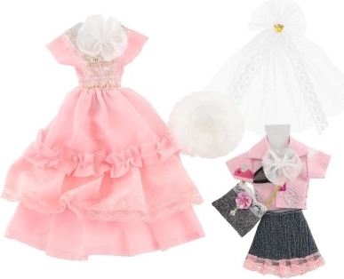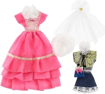Превърнете куклата си в модна икона с нашия комплект дрехи. Съдържа два вида прекрасни рокли с елегантни дантелени детайли, допълнени от практични аксесоари за различни поводи. Чудесен избор за всички малки модни дизайнерки!