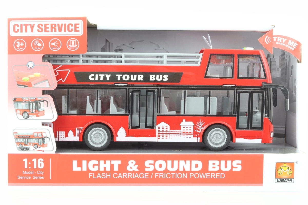 Този детайлно изработен автобус е направен от издръжлива пластмаса и предлага на децата безкрайни часове игра. Благодарение на яркочервения си цвят и реалистичните детайли всяко пътуване се превръща в приключение. Автобусът е проектиран да издава звукови ефекти, които ще зарадват всеки малък шофьор.