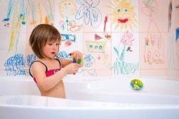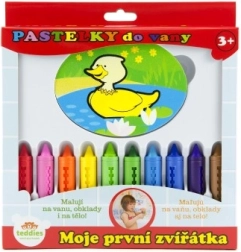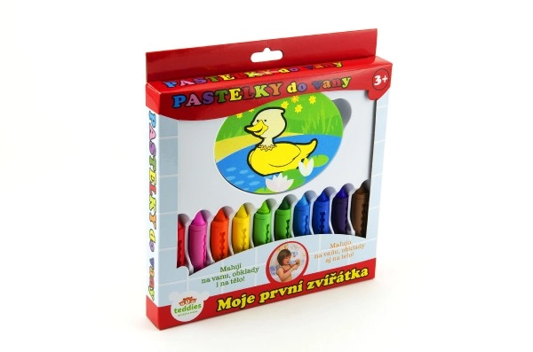 Пъстър комплект от десет пастела в уникален дизайн Моите първи животни внася креативност и веселие във вашата баня. Децата могат да рисуват върху ваната и плочките, като създават своите произведения на изкуството.