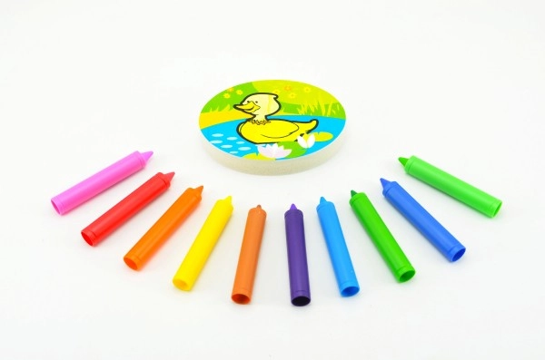 Безопасността е приоритет – пастелите са нетоксични, хипоалергенни и се отмиват лесно с вода, така че родителите могат да бъдат спокойни. В комплекта е включена и гъбка с мотив патенце, която прави рисуването още по-забавно.