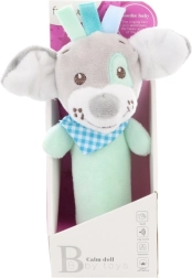 Очарователна плюшена дрънкалка във форма на зелено кученце ще зарадва всяко бебе от 0+. Лекият дизайн, приятната мека материя и пищящият ефект подпомагат развитието на сетивата, моториката и ангажират детето както по време на игра, така и за успокояване.