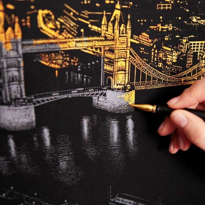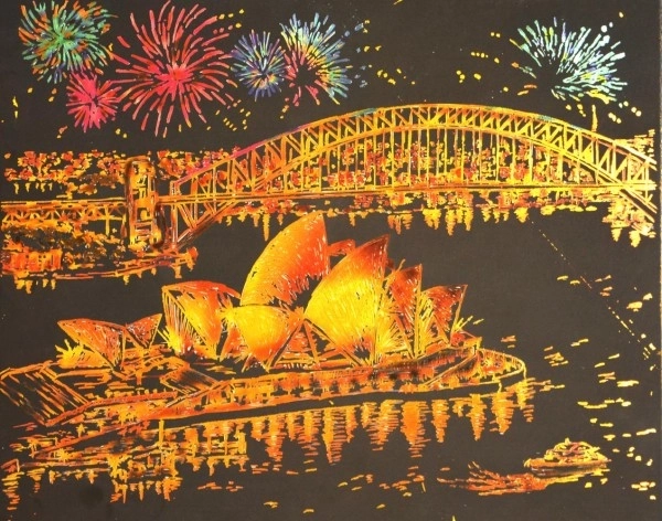 Открийте магията на стъргащата техника: под черния слой се крие златна основа, която превръща всеки издраскан щрих в контрастен, елегантен ефект. Мотивът на емблематичната Опера в Сидни в нощна версия ще зарадва начинаещи и напреднали, а готовата картина ще се превърне в оригинална декорация.