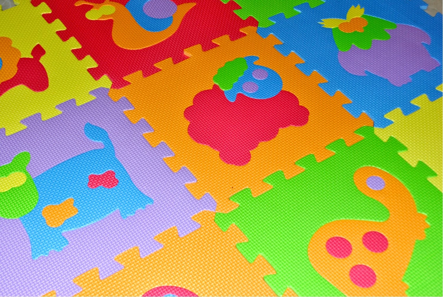 Забавен и безопасен пъзен пъзел с животни от пяна за деца от 3 години. Мека, миеща се постелка намалява шума, изолира от студ и благодарение на релефната повърхност не се хлъзга. Идеална като игрално килимче за детска стая.