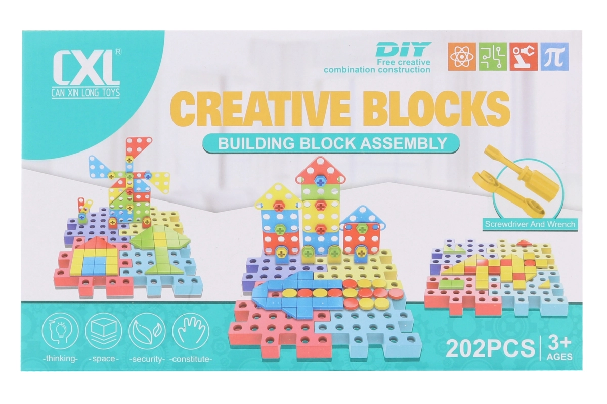 Този винтов пластмасов конструктор е идеален за малки конструктори, които обичат сглобяването и откриването. Децата могат от 202-те части да създават най-различни модели – от сгради до превозни средства – и така да развиват търпение, сръчност и пространствено въображение.
