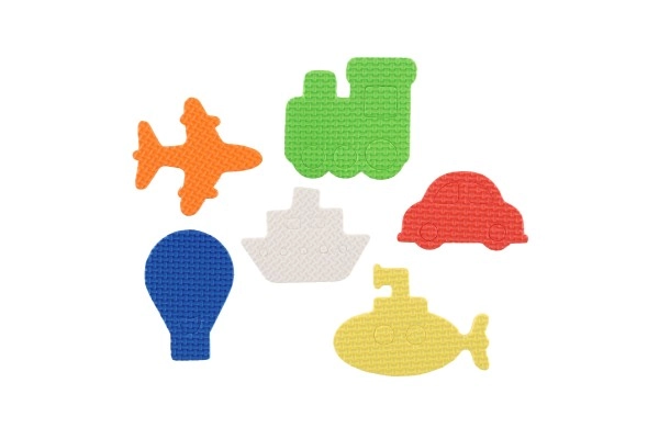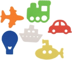 Открийте света на транспорта директно във ваната. Този забавен комплект съдържа самолет, влак, лодка, кола, въздушен балон и подводница. Пянените елементи плуват по повърхността, след навлажняване прилепват към гладки повърхности и благодарение на ярките цветове приканват към креативна игра.